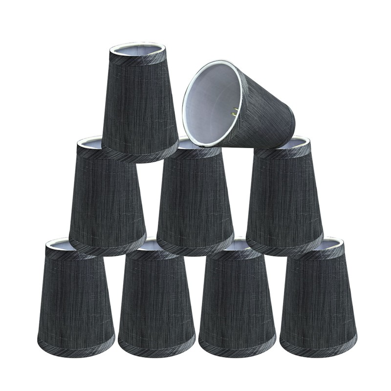 Aspen Creative 32651-9B Small Hardback Empire Shape Chandelier Clip-On Lamp Shade Set (9 Pack), Transitional Design in Grey & Black, 4" Bottom Width (2 1/2" x 4" x 5")