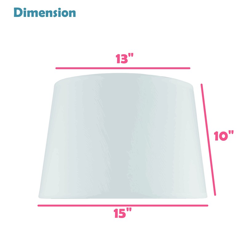 • Shade Dimensions: 13" top x 15" bottom x 10" slant height | Fitter Color & Type: Nickel, Spider fitter