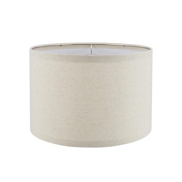 - Shade Material & Color: Linen fabric in Oatmeal| Shade Shape: Drum