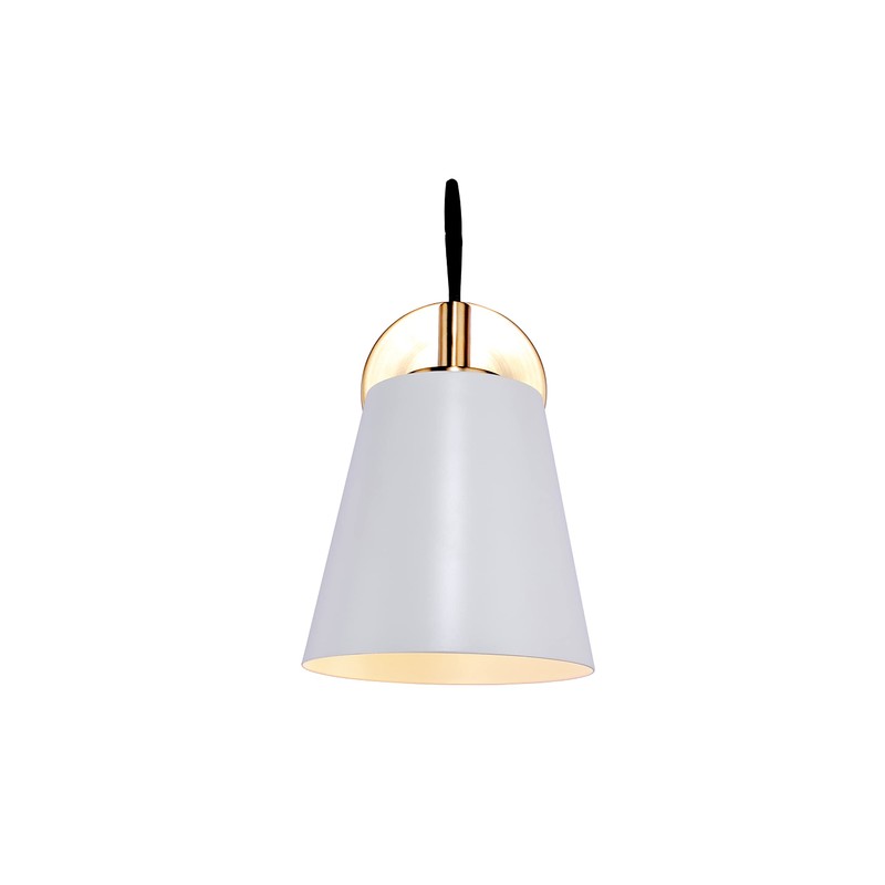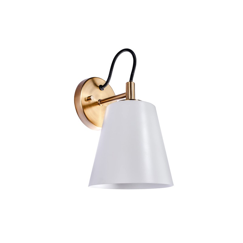 - Fixture Color: Warm Brass | Shade Color & Material: Off White Metal Empire Shade