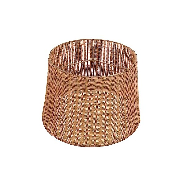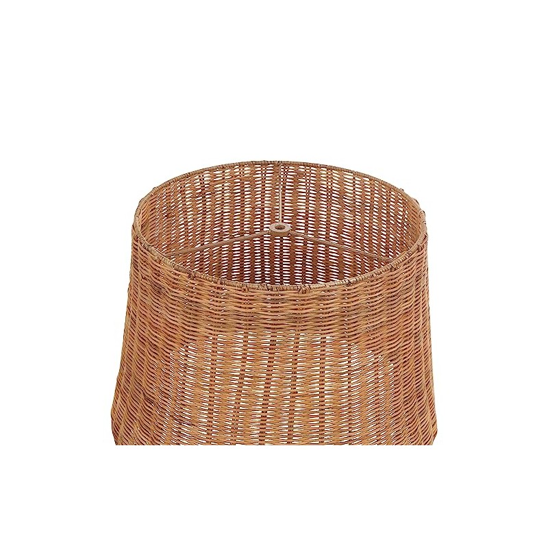 Aspen Creative Item #32993Aspen Creative offers a 1-pack empire-shaped spider lamp shade in natural rattan that will enhance your living space.Shade Dimensions: 13" Top x 16" Bottom x 11-1/4" HeightThe shade is made with a spider construction, this allows the shade to sit perfectly centered on a lamp harp attachment. It is compatible with a saddle base, and uno slip-on base lamp harp or a bulb clip adapter.Our lamp shades are one-of-a-kind due to their handmade nature. As a result of environment and climate conditions, sizes and colors may slightly vary. It's important to note that minor imperfections are not considered faults but rather add to the appeal of each lamp shade. Additionally, the colors of the lamp shades can vary depending on when they were woven. Please note that our lamp shades are made from plant based material (no plastic) and may have a natural, organic fragrance that diminishes over time.Crafted with precision and attention to detail, our lamp shades are made with high-quality materials that are built to last. They are made to withstand daily use while still maintaining their shape and beauty.This product is suitable for a wide range of lighting options including table lamps, accent lamps, vintage lamps, candle stick lamps, kid's room lamps, bedroom lamps, bedroom table lamps, night stand lamps, reading lamps, bedside reading lamps, living room end table lamps, bedroom night stand lamps, and pendant lights.
