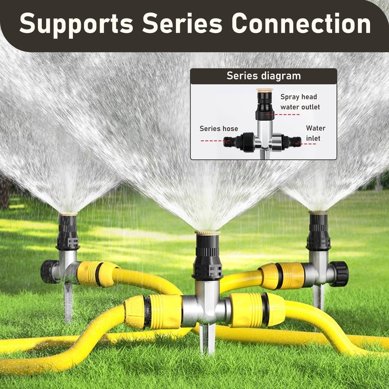 - Mit der einfachen Installation können Sie den Rasensprenger schnell in den Boden stecken und an einen Gartenschlauch anschließen. Drehen Sie den Wasserhahn auf, und der Sprinkler verteilt das Wasser gleichmäßig wie ein sanfter Regenschauer.