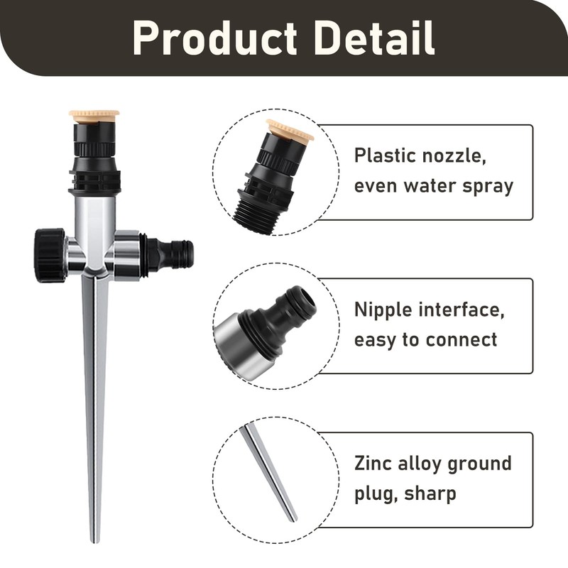 - Langlebige Materialien – Der Erdspieß aus Aluminiumlegierung ist rostbeständig und korrosionsfrei, wodurch der sprühregner mit metalldorn eine lange Lebensdauer bietet und auch in feuchten Umgebungen zuverlässig funktioniert.