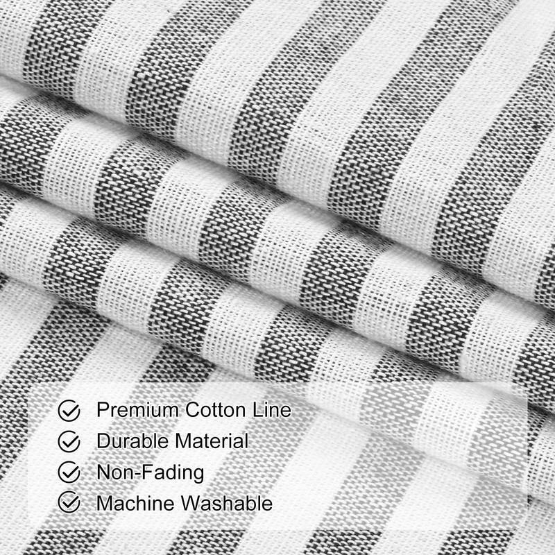 ASPMIZ Cotton Linen Farmhouse Curtains for Living Room, Boho Rustic Window Curtain Panels, Black with Grey Stripe Country Curtains for Bedroom, Back Tab Modern Drapes for Windows 52 x 84 Inch 2 Panels
