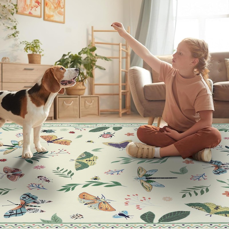 - Insect Design: Our insect area rug features a stunning design with a variety of beautiful insects and delicate floral patterns. Every time you look at this bedroom rug, you'll feel like you're stepping into a charming garden, experiencing the beauty and wonder of nature right in your own home
