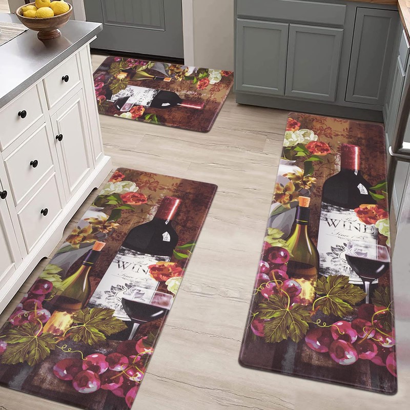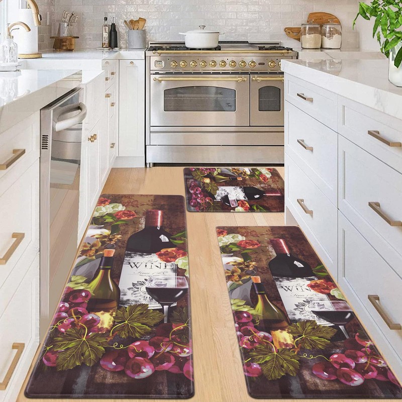 - Fashion Design: Retro Wine kitchen carpet add charming and elegant elements to any room in your home. If you're looking for kitchen floor mats to bring a touch of fashion and elegant feel to your home, this wine kitchen rugs and mats are your best choice!