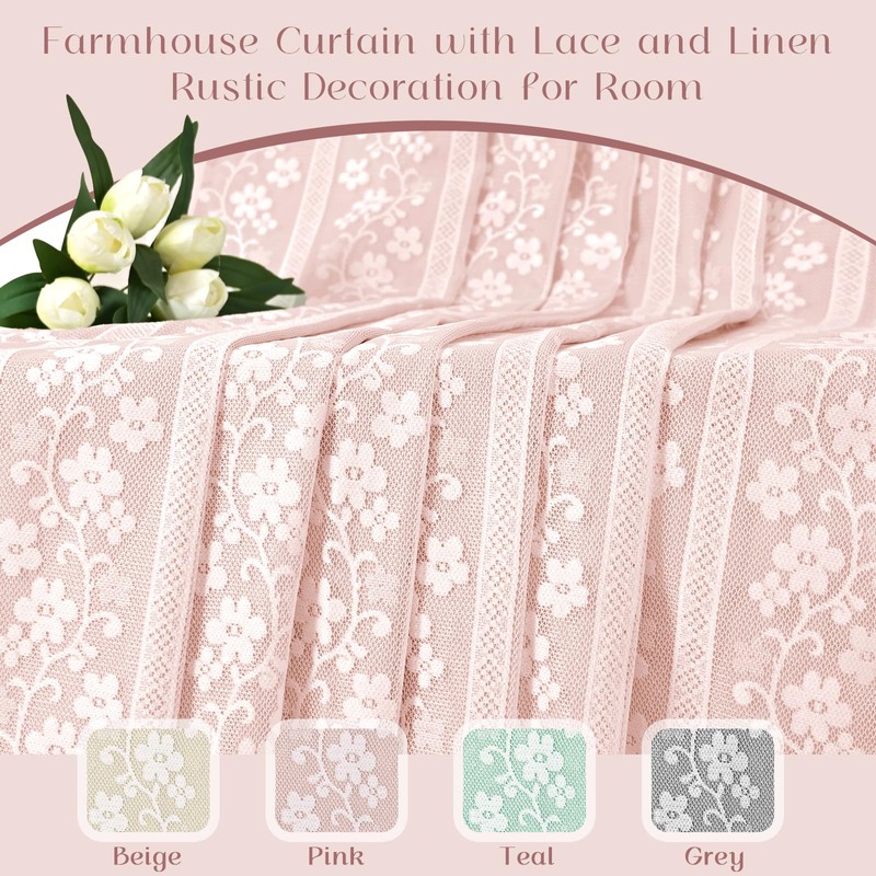 - Farmhouse Kitchen Curtains: Our double layered window curtains feature a unique two-layer design. The sheer floral patterned lace surface creates a boho romantic atmosphere, while the pink linen layer exudes a natural, rustic charm. They are perfect to match multiple home styles, like farmhouse, country, vintage, classic, modern and more