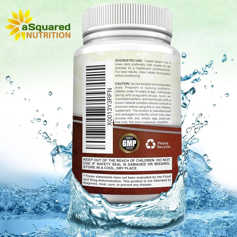 Asquared Nutrition Vitamin D3 + K2 – Bone & Heart Support, 180 Chewable Tablets