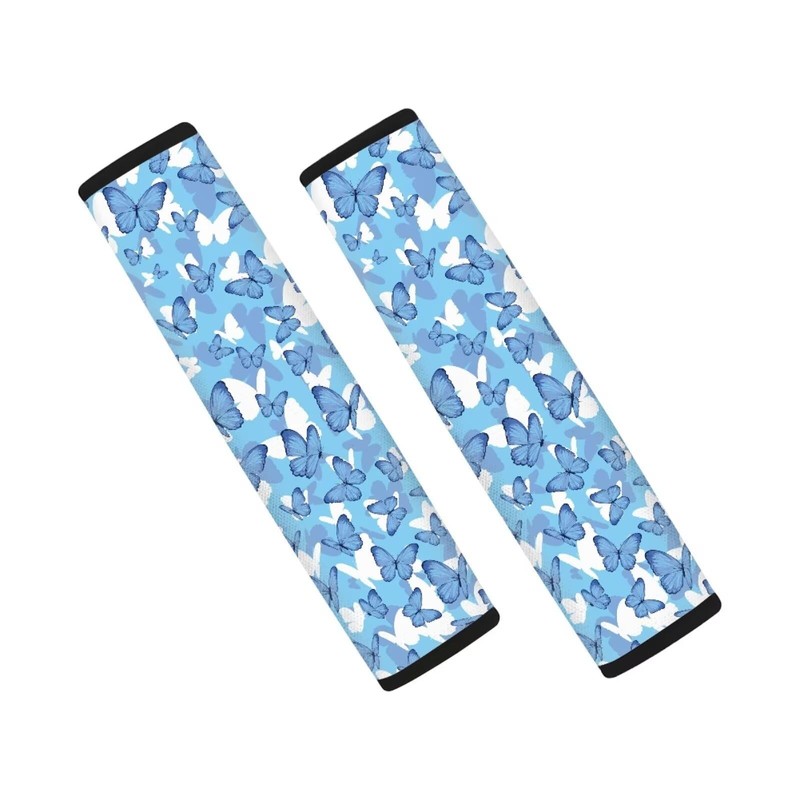 ASQVTIFE Car Seat Shoulder Strap Pads White Seat Belt Covers Blue Butterfly Seat Belt Shoulder Strap Pad Seat Belt Covers for Women Seat Belt Covers for Adults 2 Pack Seat Belt Cover Car Accessories