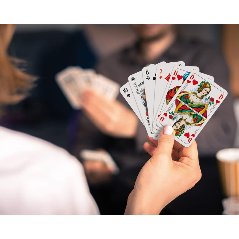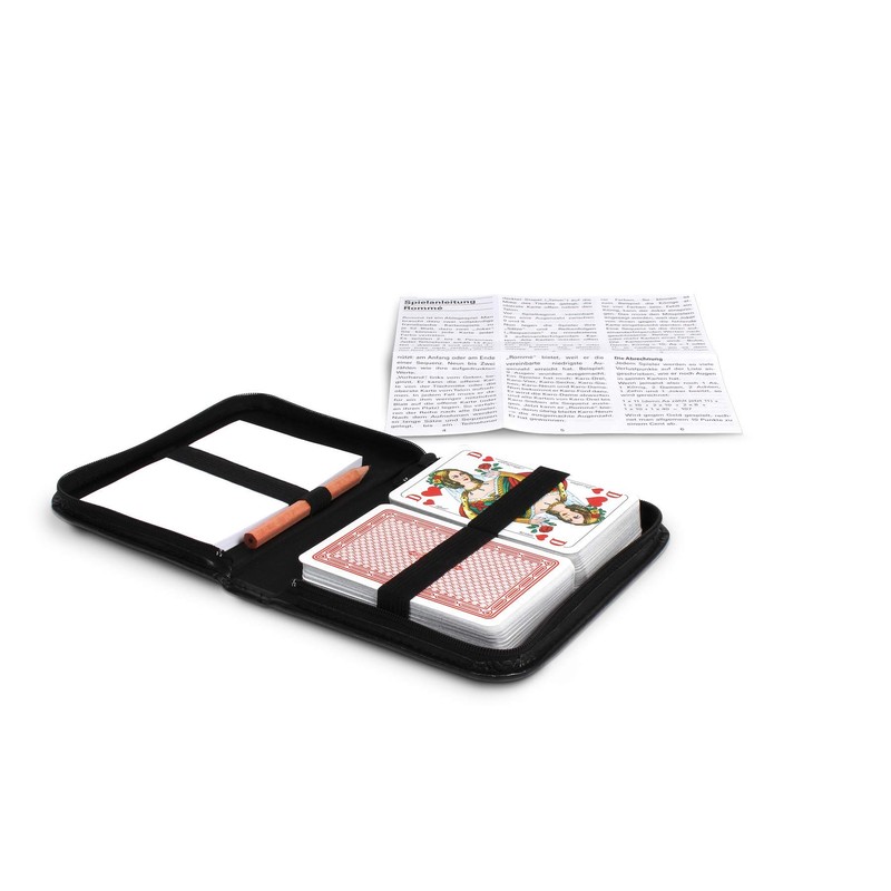 - Contents: 2 x 55 playing cards, pencil, pad and game rule