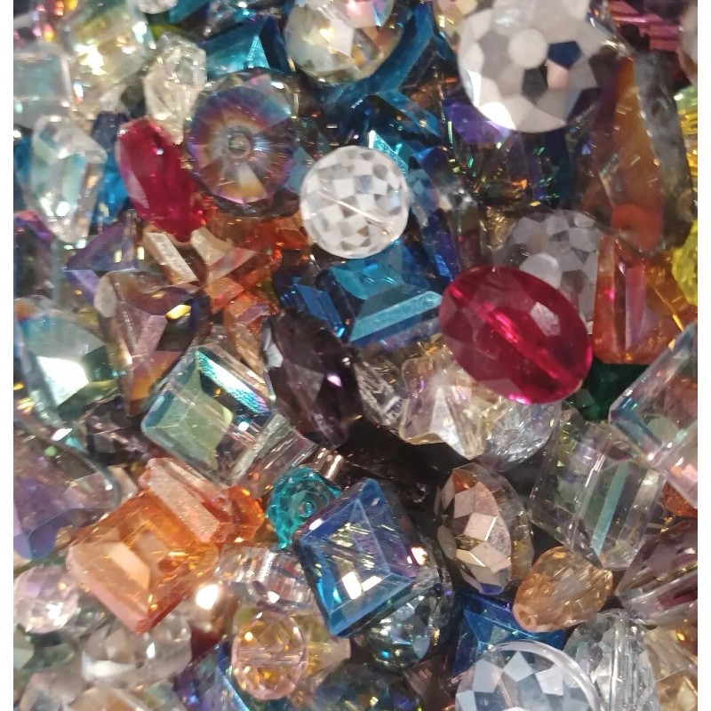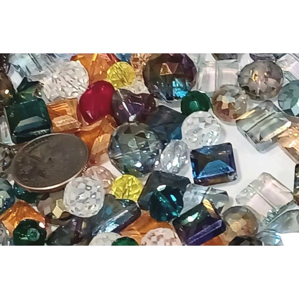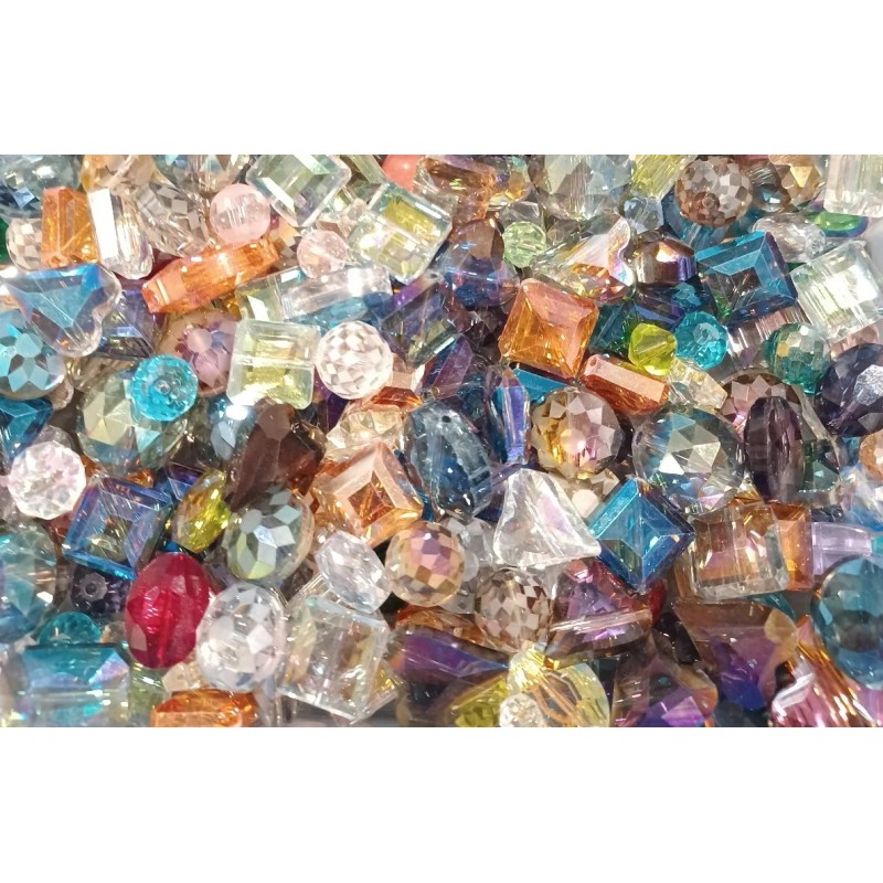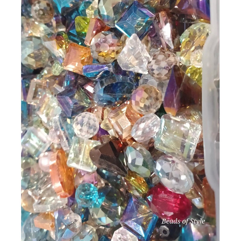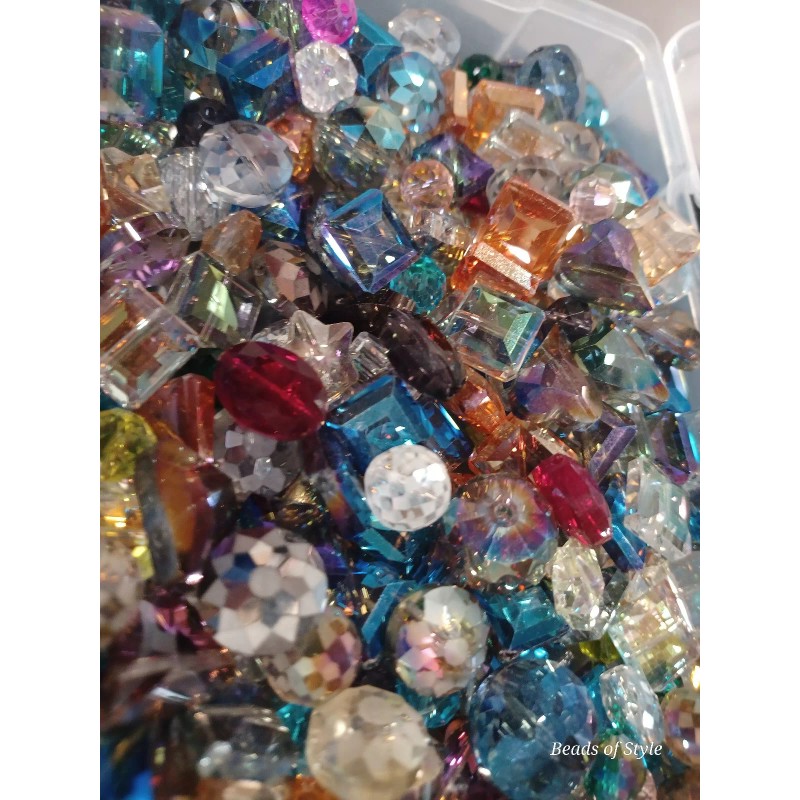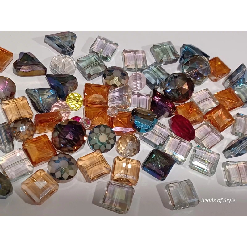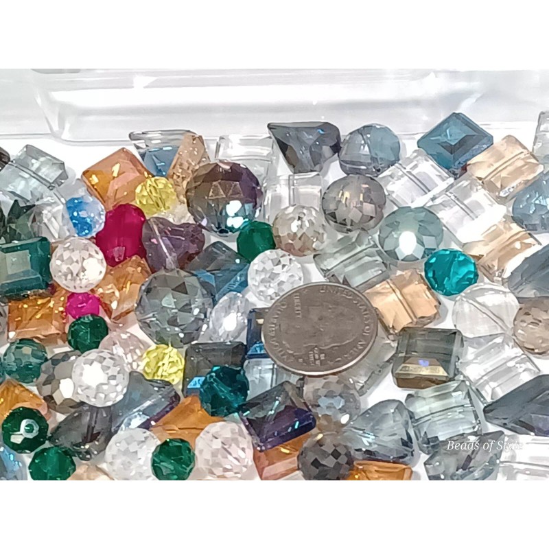 25 pc. Lot - This lot of 25 crystal beads comes in assorted shapes, including rondelle, square, cube, round, star, and heart. The beads are transparent and faceted, making them perfect for adding a touch of elegance to any jewelry project. Each bead measures between 10mm - 18mm in size and is made of high-quality glass/crystal material. The variety of colors, shapes, and sizes allow for endless design possibilities, making this lot a must-have for any crafts or jewelry making collection.
