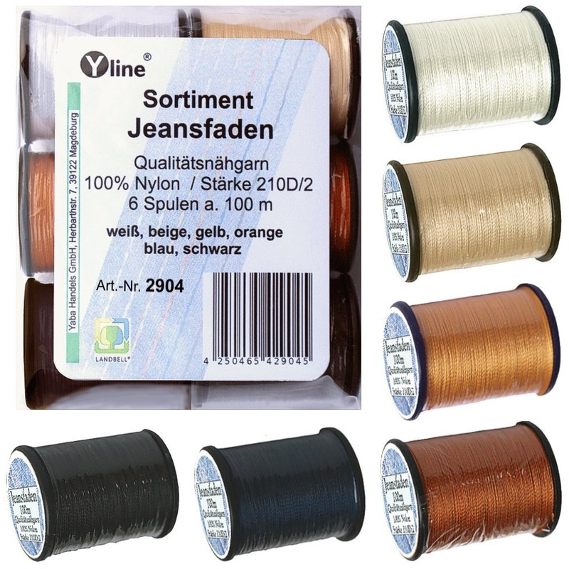 - 6 spools. 100 m denim thread, quality sewing thread (assortment) in poly pack