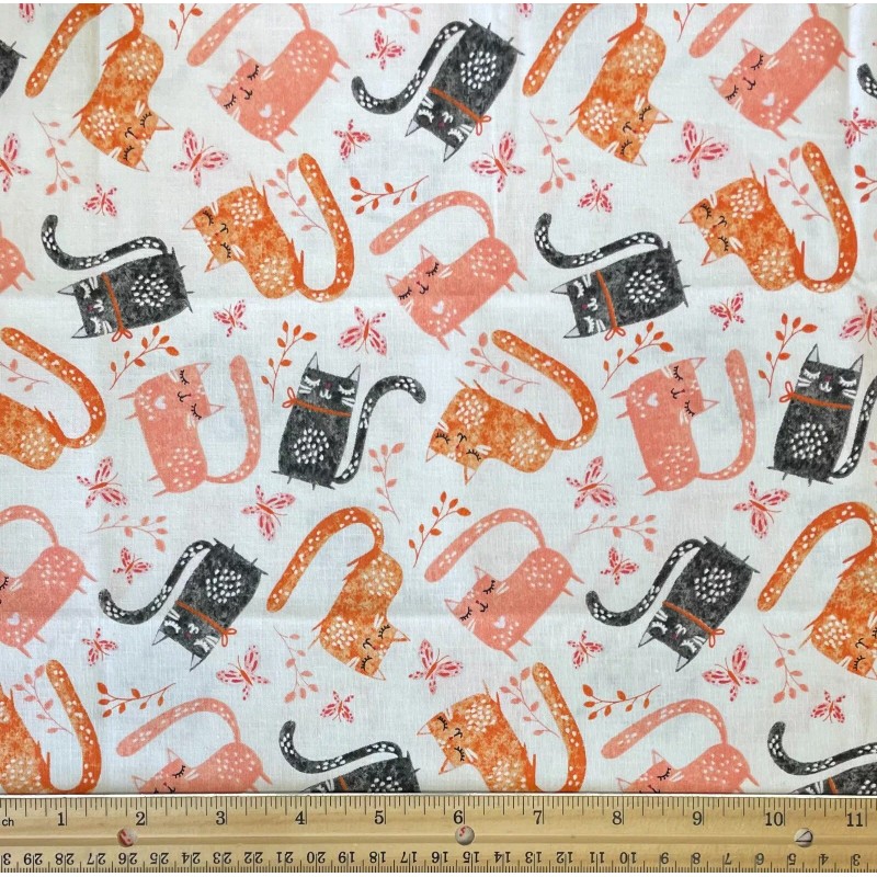 Assorted Fabric FQ Fat Quarter Set 2 Black Orange White Cats Kittens Cat Meow 100% Cotton