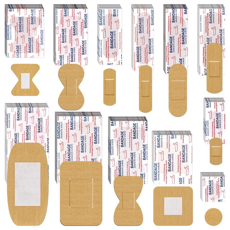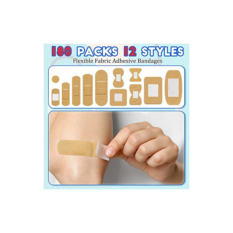 Assorted Styles Flexible Fabric Adhesive Bandages Small Breathable Fingertip Bandages Cloth Elastic Knuckle Bandages Various Sizes Spot Bandage for First Aid and Wound Care (180)