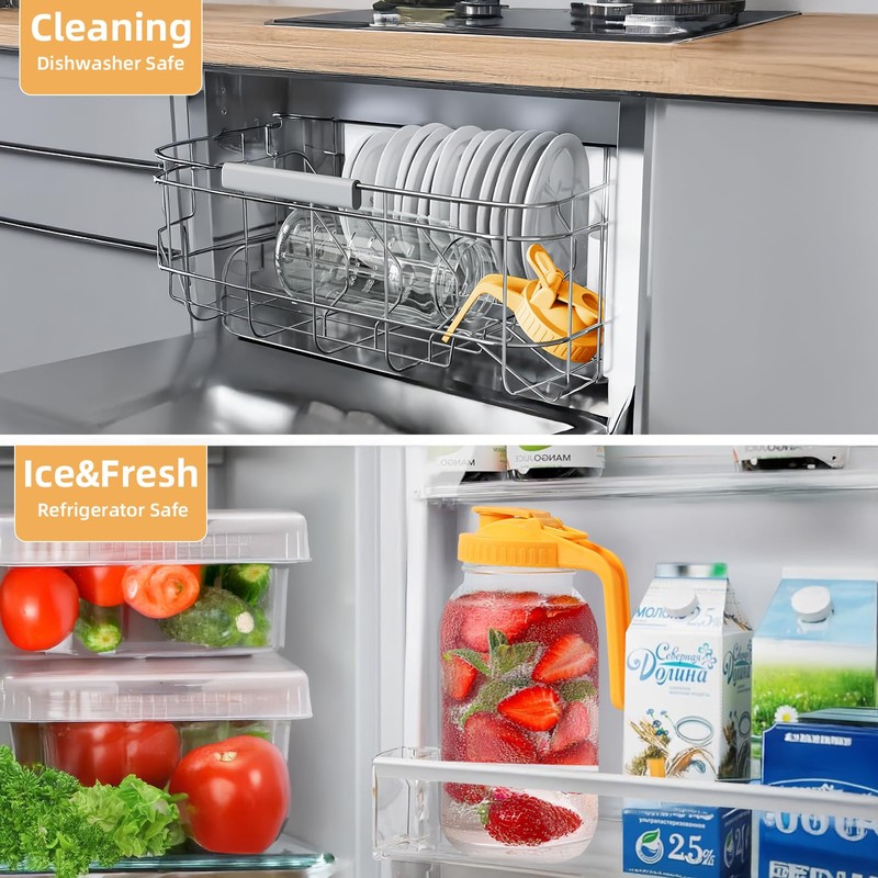 • Keep Drinks Fresh and Tasty: This 64 oz glass breast milk jar comes with a flip top lid with a silicone seal to lock in the taste and freshness of your favorite beverage while also being leak-proof. It's easy to open, pour, and close, making it perfect for transporting beverages. In addition, the lid keeps dust out.