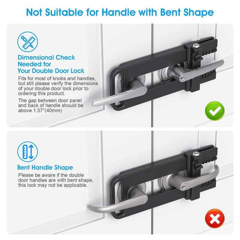 • [Bigger Range of Locking Adjustment]: Please verify the dimension before placing order. Thought the lock has big range of adjustment to suit most double door lock set, still please check your french door lock, bifold door lock, closet locks for double doors and double door locks for front door or double door lock for interior french doors. Please check the dimensions before purchasing to prevent potential issue on application.