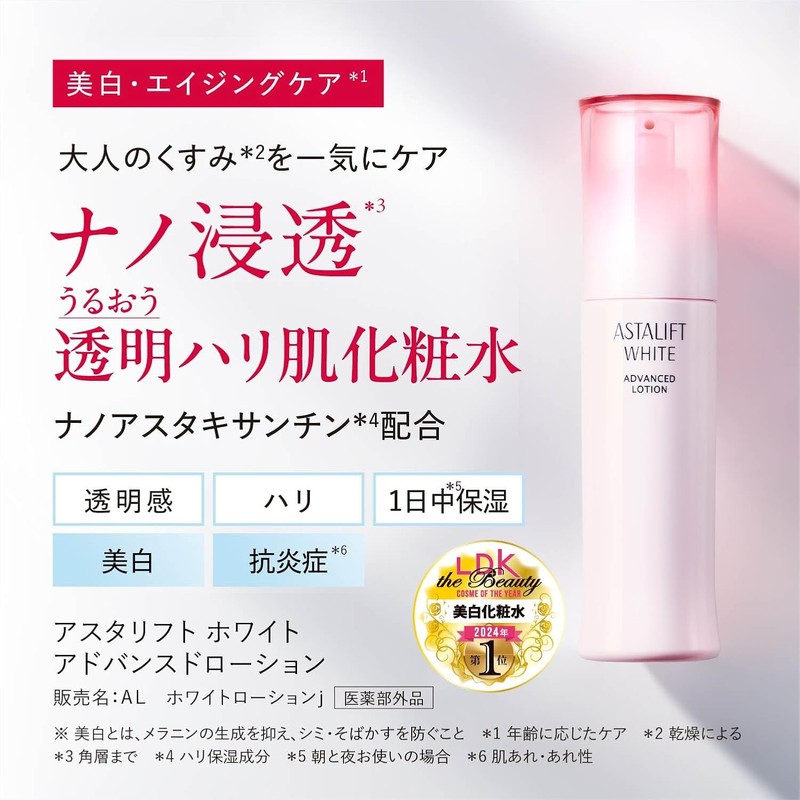 ASTALIFT White Advanced Lotion, Whitening Lotion (AL White Lotion j), Refill (Approx. 2-Month Supply, 130ml) [Official Store Exclusive] (Includes 4 Extra 1mL Pouches)