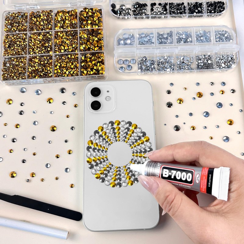 - Easy to Use -- This set includes jewelry glue and tweezers. You don't need to buy additional tools. Just apply glue on the surface of the object to be decorated and stick the rhinestones on and wait at least 24 hours to fully cure.