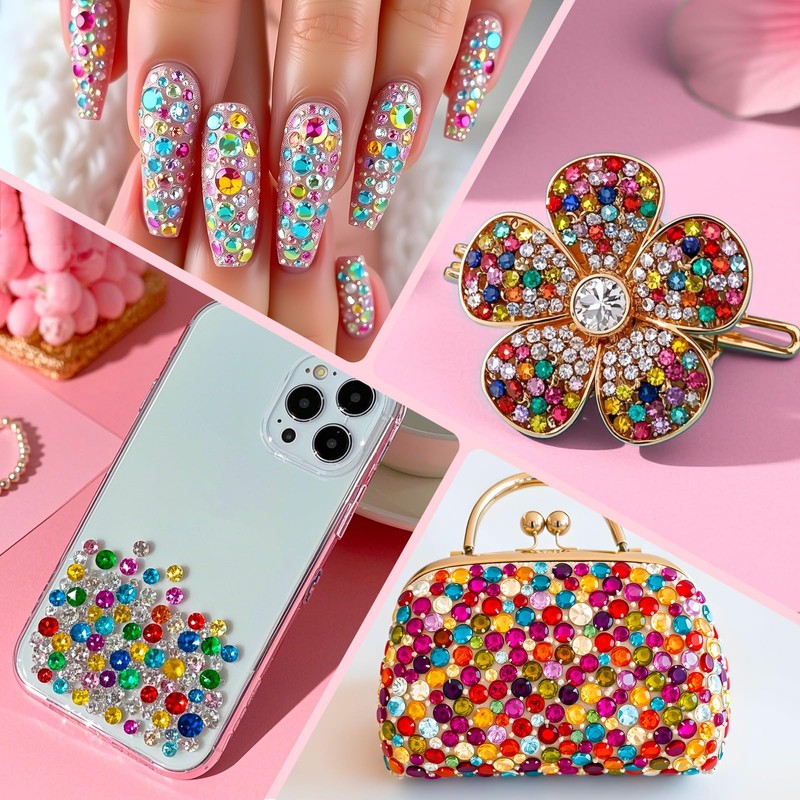 - Wide Range of Applications -- They can meet the needs of various crafts and home decorations, such as decorating tumbler cups, clothing, shoes, phones, pens and even cars. These resin rhinestones can also be used for nail art and facial makeup, adding vibrant colors to your life and more sparkling bling-bling to help you stand out in the crowd.