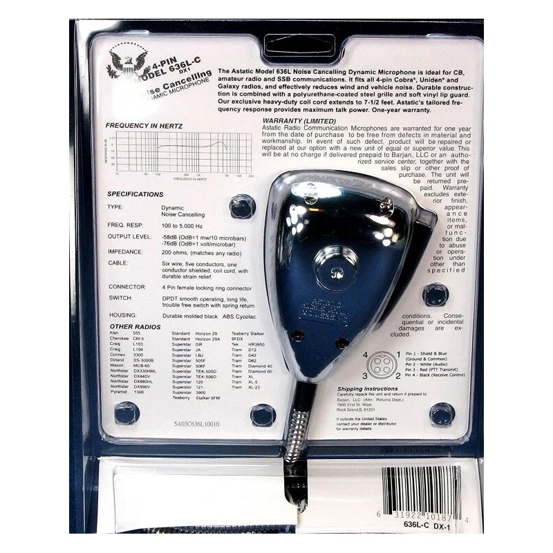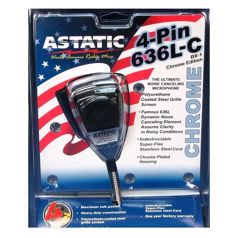 Astatic 636L-C 4 Pin Dynamic Microphone with Chrome Body & Black Grill / Chrome