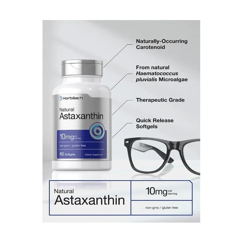 Astaxantina 10 Mg Antioxidante (60 Cápsulas) Americano Sabor Sin sabor