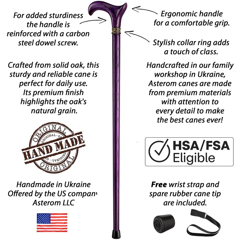 Asterom Walking Cane - Handmade, Ergonomic, Cane for Women - Wooden Walking Sticks for Seniors Women, Cool, Unique, Wood (Purple, 36 Inches)