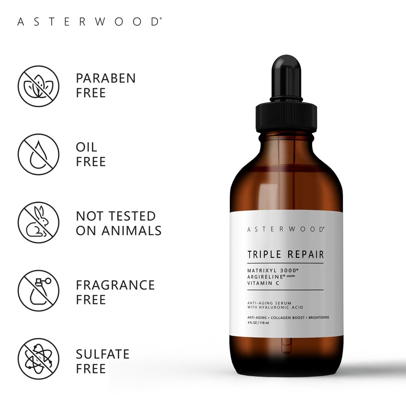 Asterwood Asterwood Triple Repair Matrixyl 3000 + Argireline + Hyaluronic Acid + Vitamin C Serum for Face - Anti-Aging, Collagen Boosting, Hydrating - Fragrance-Free - 4 Fl Oz