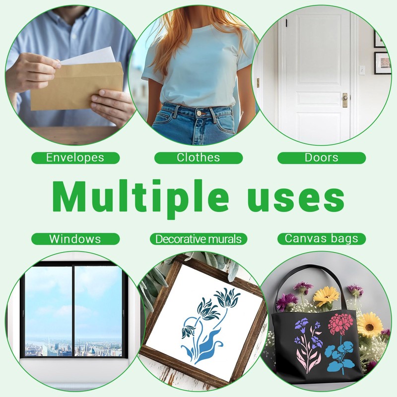 - 【Wide Applications】 Our wildflower stencil makes your drawing easier and has more possibilities. You can use these art stencils on various surfaces, like paper, wood, wall, canvas, glass, fabric, skin, etc