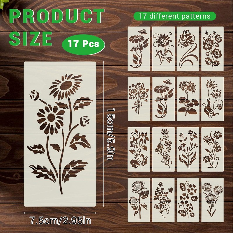 - 【17 Beautiful Patterns】 Our stencils for painting include 17 different delicate flower stencils, which measure 5.9" x 2.9" (15 x 7.5 cm). Flowers and leaves of each pattern are beautifully detailed to meet your drawing needs