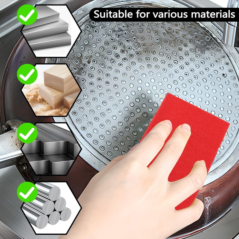 - 【Diversity in Application】 These small sanding pads are great for grinding, polishing, cleaning, and rust removal. They work well for fine sanding and in wood, metal, plastic, paint, drywall, clay, ceramic, and more