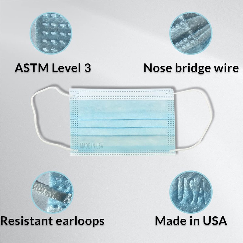 ASTM Level 3 Small Face Masks for Adults 3 Layers Made in USA Disposable 50 Pieces (Light Blue)