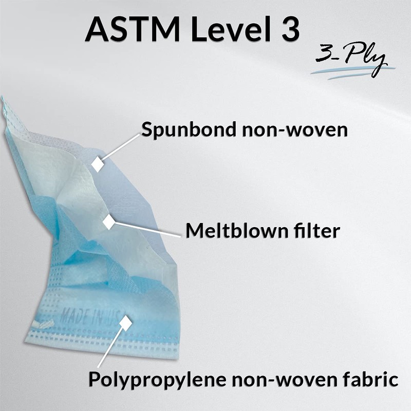 - Our face masks are 3-ply. The first layer is made with non-woven polypropylene, the second layer is made with melt-blown non-woven filter fabric and the third one is made with spunbond skin friendly non-woven fabric.