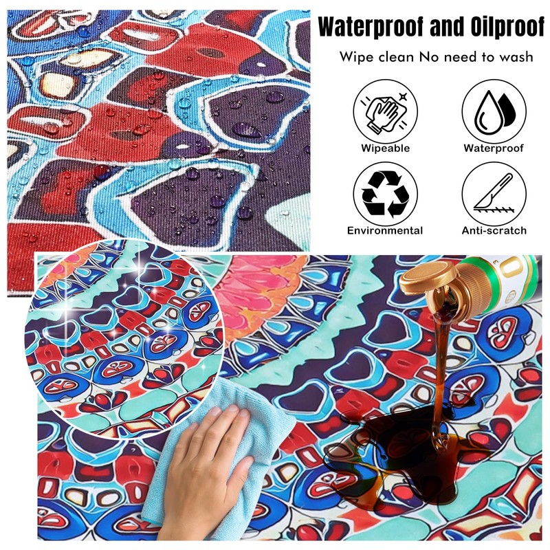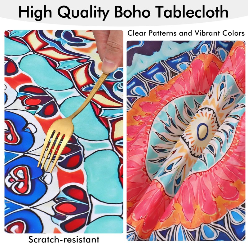 - 【Premium Material】This Vinyl fitted tablecloth are made of high-quality waterproof fabric, which is soft and durable, waterproof and sunscreen, scratch resistant, wrinkle resistant, which is exquisite and colorful, not fading or falling off. Our round tablecloth is designed with Bohemia style bring table cloth elegant, fashionable and versatile which is suitable for the style of most families. It is a good choice for you to decorate your table.