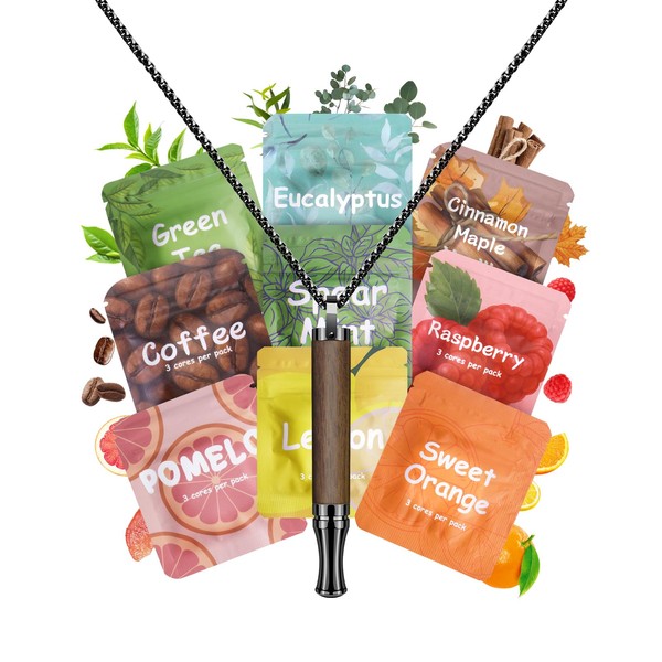 ASTOFLI Anxiety Breathing Necklace with Resistance: 9 Flavoured Pack Air Wooden Breathlace with Resistance Filter Natural Essential Oil Breath Quitgo Breathing Necklace Stress Anxiety Relief Chain