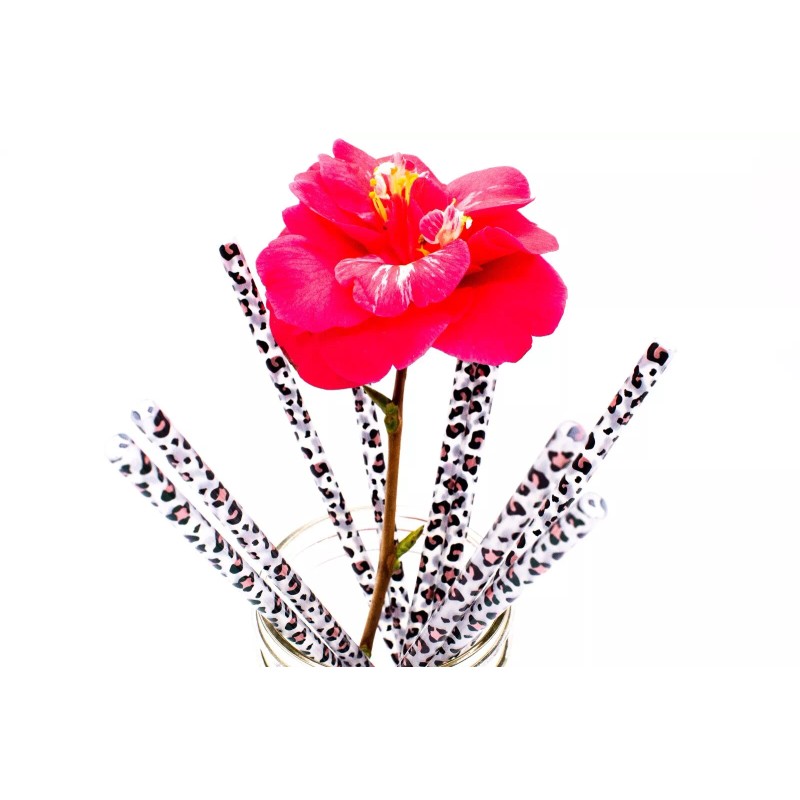 Astor Reusable Plastic Straws, BPA Free, Leopard Print ,  Dishwasher Safe