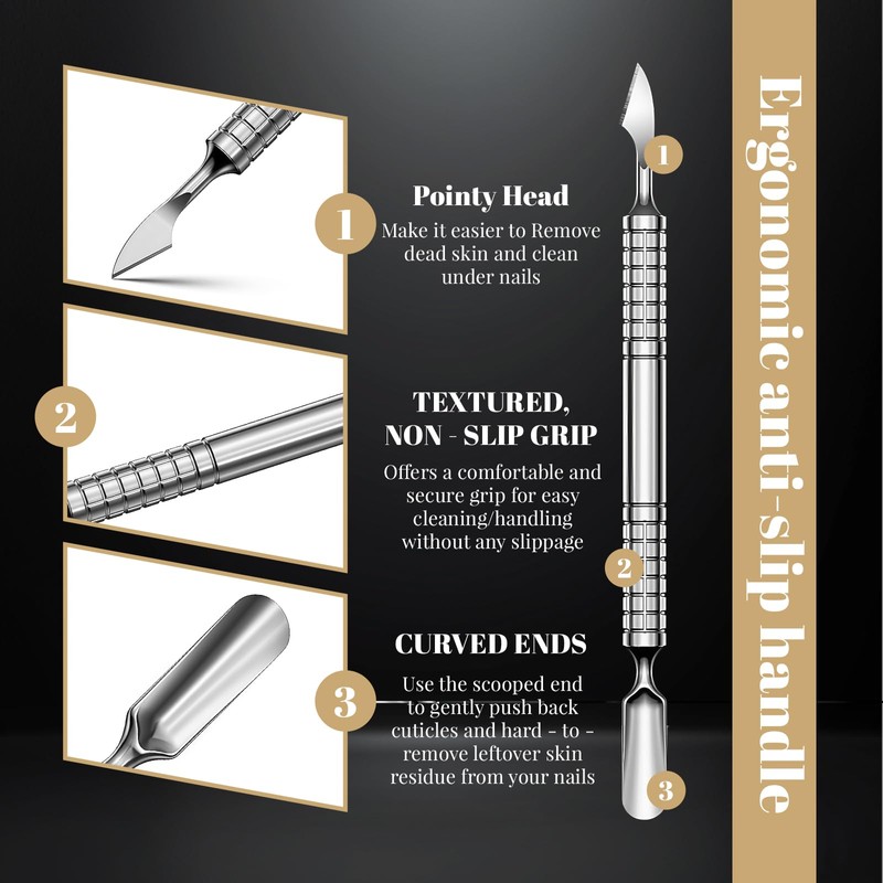 - ERGONOMISCHES DESIGN FÜR MEHR KONTROLLE: Der nagelhautentferner verfügt über einen um 30 % verbreiterten Griff mit diamantgeschliffenen Rillen, der maximalen Halt und Präzision bietet. Egal ob im nagelset für Profis oder zuhause – der rutschfeste Griff erleichtert jede maniküre.