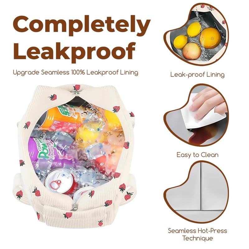 4.Leakproof and Practical: The reusable lunch bag is equipped with a leakproof interior that prevents liquids or food from spilling. Perfect for transporting wet drinks or fruits, this bag ensures your meals remain safe and secure without the risk of leaks or stains.