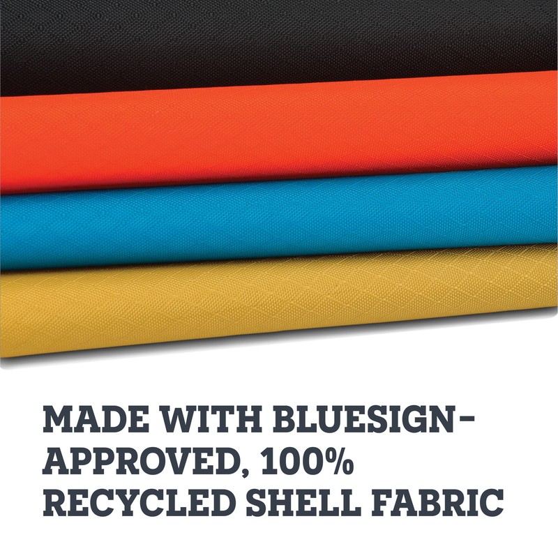 - Our most comfortable, eco-friendly life jacket; Made with sustainable, bluesign-approved, 100% recycled 300D Diamond RPET polyester shell fabric