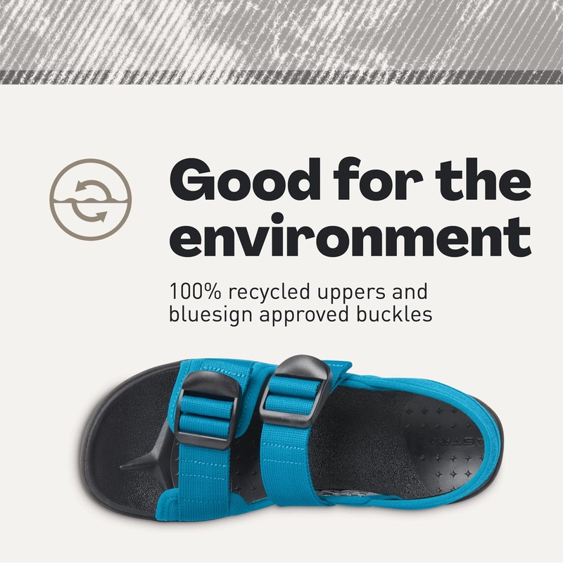 - Made with the environment in mind with 100% recycled webbing and canvas uppers; Astral maintains its commitment as a bluesign system partner by featuring bluesign-approved buckles