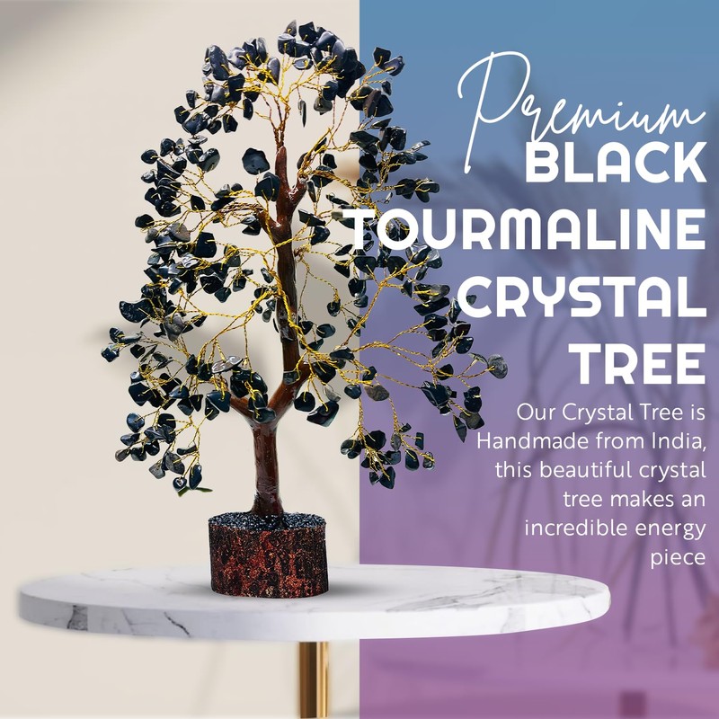 - CRYSTAL TREE: Black Tourmaline Crystal Stone Tree for Vastu and Healing, the tree is approximately 10-12 inches tall and there are about 300 natural crystals. Stones are fragile. Please handle with care. These are made from Natural Stones, so no 2 stones will be similar.