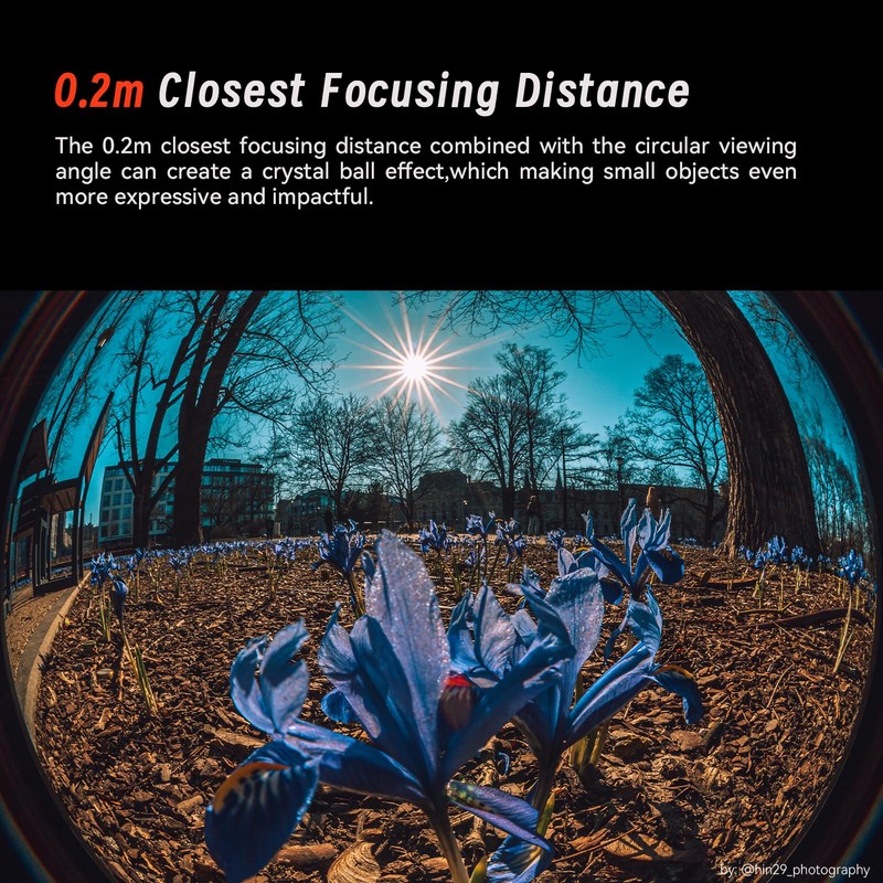 - 0.2m Closest Focusing Distance: The closest focusing distance of 0.2m combined with the circular viewing angle can create a crystal ball effect, which gives small objects even more expressiveness and effect.