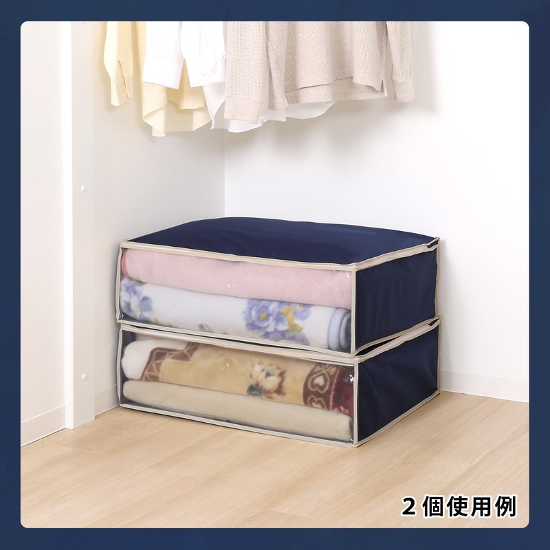 Astro 177-28 Navy Blanket Storage Bag, Storage Case, Blanket, Light Bedding, Clothing, Storage Box, Towel Blanket, Thin Comforter, Breathable Non-Woven Fabric, Prevents Dust, Visible Contents, Foldable,