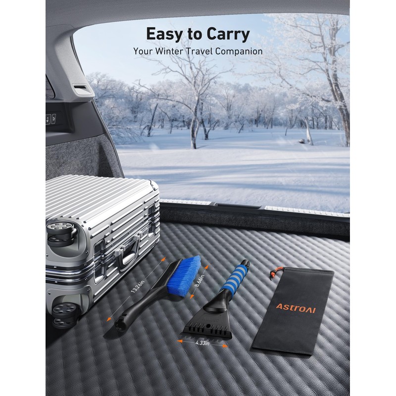 - Dimensions: 27” long gives you added reach for cars, 7” brush head moves quickly across windscreens, 4.5” ice scraper gets deep down under without scratching.