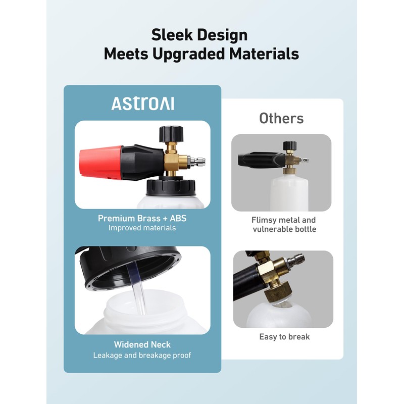 AstroAI Foam Cannon, Heavy Duty Car Foam Blaster Wide Neck Adjustable Snow Foam Lance and Thick Foam for Pressure Washer with 1/4" Quick Connector,1L Bottle