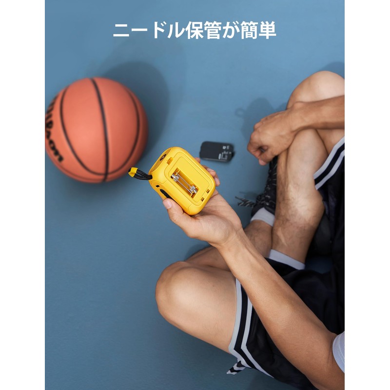 • 【Compact Size】The portable size of the air pump allows you to store the included inflator needle in the built-in storage panel. Never worry about losing or bending needles. Lightweight at about 225g and the dimensions of 6.9 x 4.2 x 9.2cm can easily fit in your pocket or bag, so you can take it anywhere