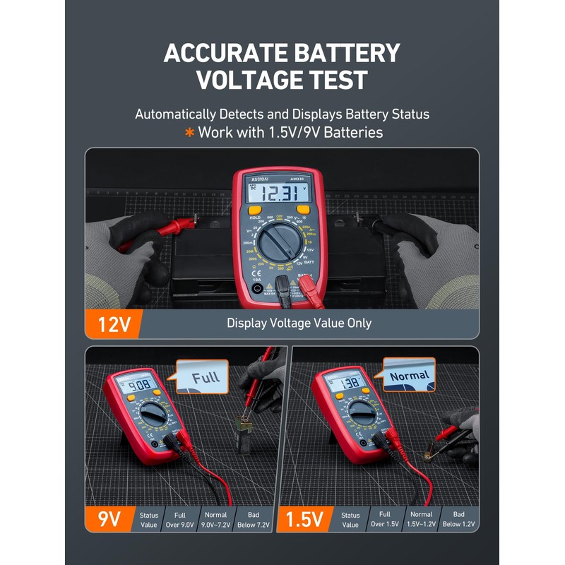- VERSATILE DIGITAL MULTIMETER - Accurately measures AC/DC Voltage, DC Current, Resistance, and Diode. This Multimeter is a really useful tool for solving industrial and household electrical issues. Suitable for Household Outlets, Fuses, Batteries (including Vehicles), Automotive Circuit Troubleshooting, Charging System, Testing electronics in Cars etc.