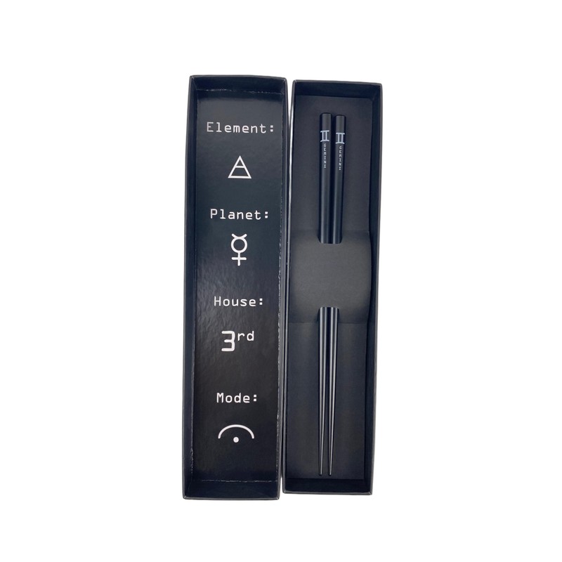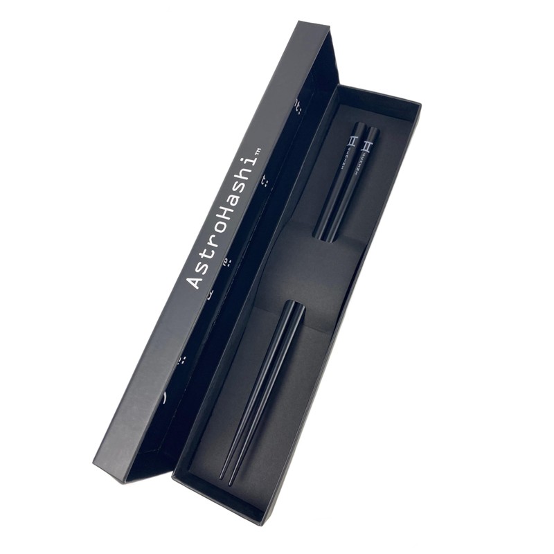 AstroHashi, Zodiac Astrology Chopsticks with Box - Collectible Reusable Chinese Korean Japanese Chop Sticks - 9in Wooden Chopsticks (Gemini)