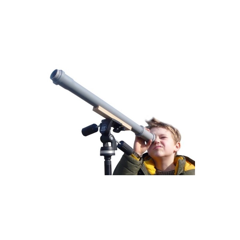 In addition to first-class colour-corrected lenses, detailed assembly instructions and other accessories, you will receive a shopping list for your hardware store. With the HT pipe elements purchased there (grey installation pipe, approx. 2.50) and short craft time, this creates a stable astronomical telescope with sharp, colour-pure image, which can be enlarged 30 times and screwed onto any photo tripod. As with all astronomical telescopes, the image is upside down, but this does not interfere with sky observations.