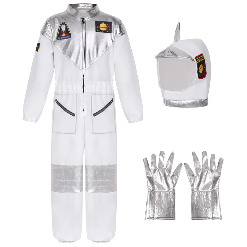 Astronaut Costume Children's Space Costume Spaceman Space Suit Spaceman Jumpsuit Outfit with Astronaut Helmet Astronaut Gloves for Boys Girls Carnival Theme Party Jumpsuit 031-120