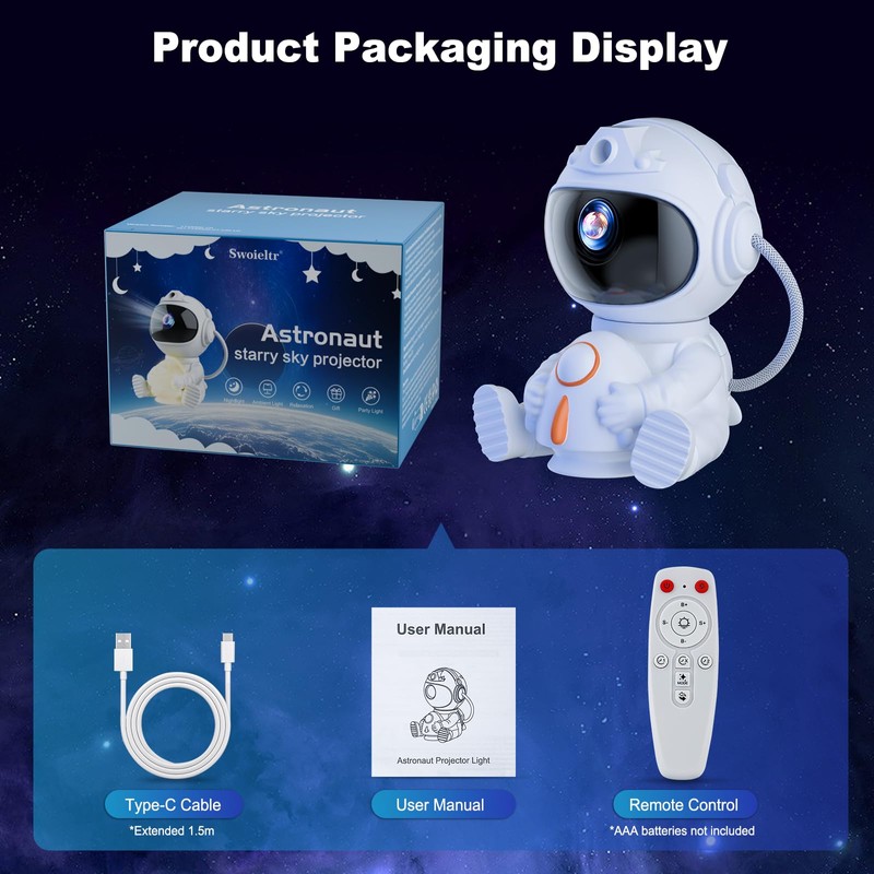 - 【Best Gifts for Children and Adults】 Are you looking for the ideal gift? The astronaut light projector with nebula is an excellent gift for Christmas, Valentine's Day, birthdays, or Children's Day. Spaceman light projector is perfect for lovers of the starry sky and astronomy. It includes an astronaut star projector, a USB cable, a remote control, and a user manual. We are confident with our high quality starry night light projector.